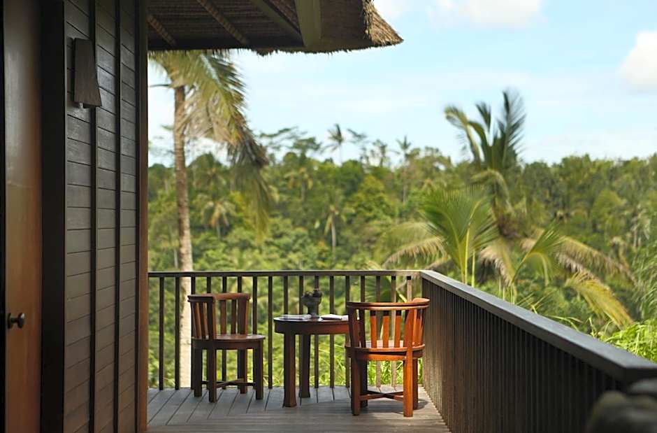 Set on a gentle hillside near Ubud, this resort blends Balinese charm with serene scenery. Accommodation options span river-view and garden-view rooms, many with balconies or terraces to soak in the tranquil surroundings. Inside, spaces offer calming views along with air conditioning and free toiletries for comfortable stays.