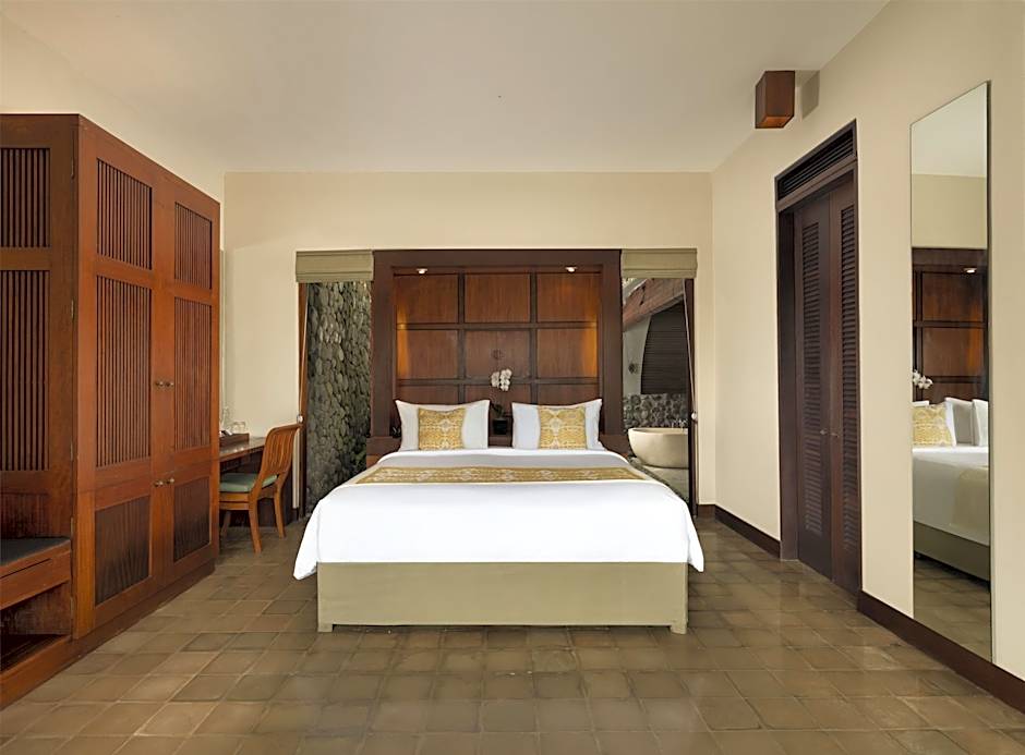 An outdoor infinity pool with a view invites a refreshing dip, while villas can feature their own private pools for extra seclusion. Spa and wellness packages provide relaxing retreats, and on-site dining offers three distinctive venues: Plantation Restaurant (Indonesian, traditional, romantic), Cabana Lounge (International, modern), and Dinner at Bale Bengong (Indonesian and International, romantic).